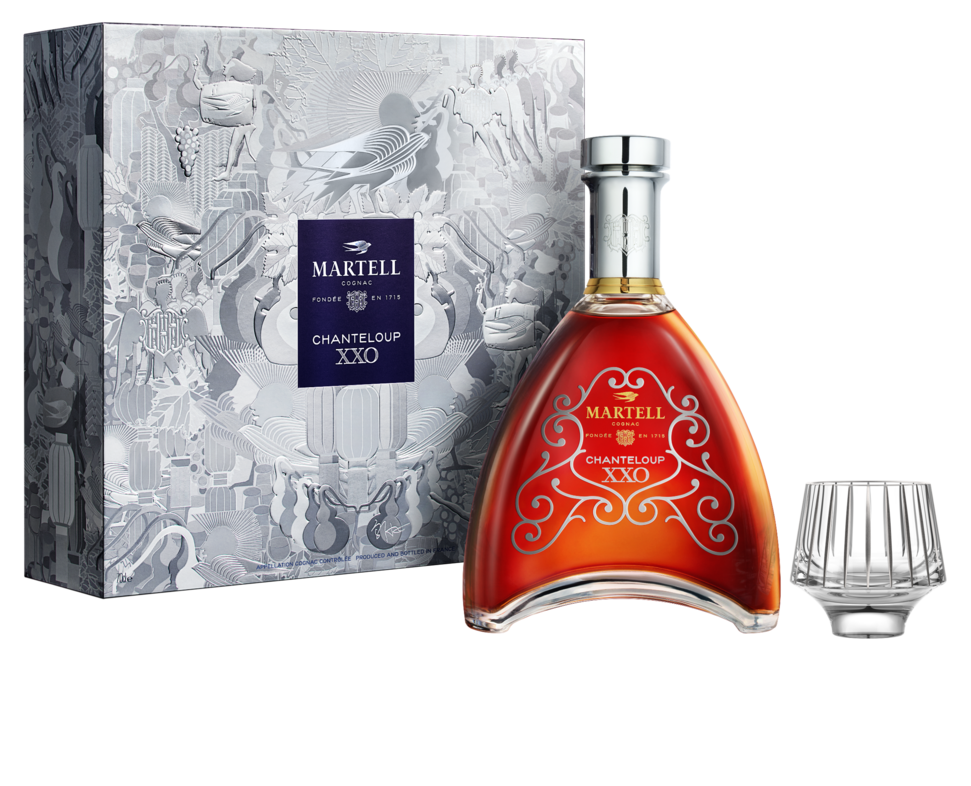 The bold and confident personality of Martell XO is evoked by a striking design featuring a personification of its iconic, arch-shaped bottle, while for Martell Chanteloup XXO, an oak-barrel motif within a precious, pared-down design alludes to the harmony attained by this exceptional cognac during its long ageing process.