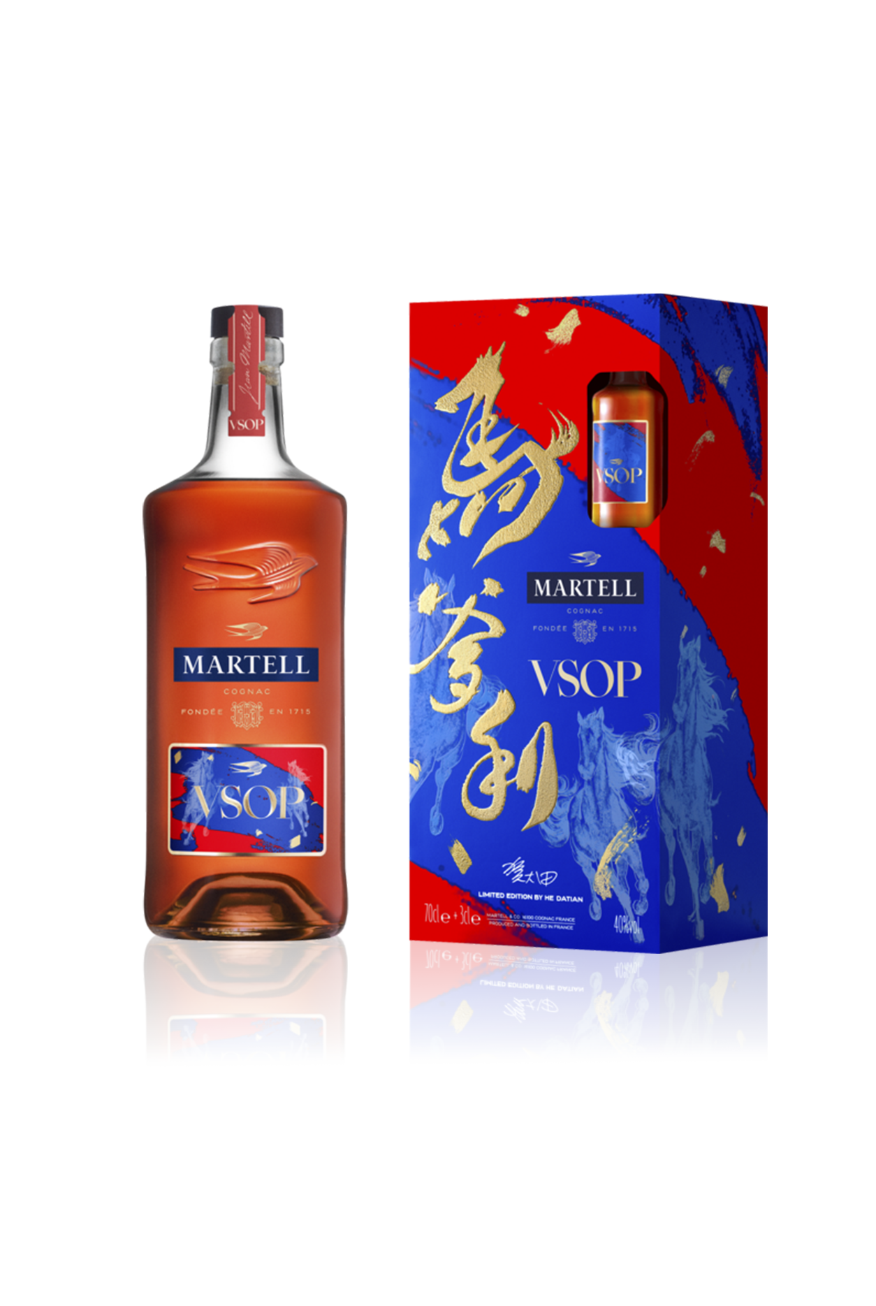 For Martell Cordon Bleu, the horse is represented as it changes direction at speed, suggesting the successful trajectory towards elevation of those who appreciate Maison Martell’s most iconic cognac, while the colour palette is both festive and eye-catching. He Datian’s finely detailed drawings lend this limited edition a sophisticated, hand-crafted quality, making it a pleasure to give and a privilege to receive.